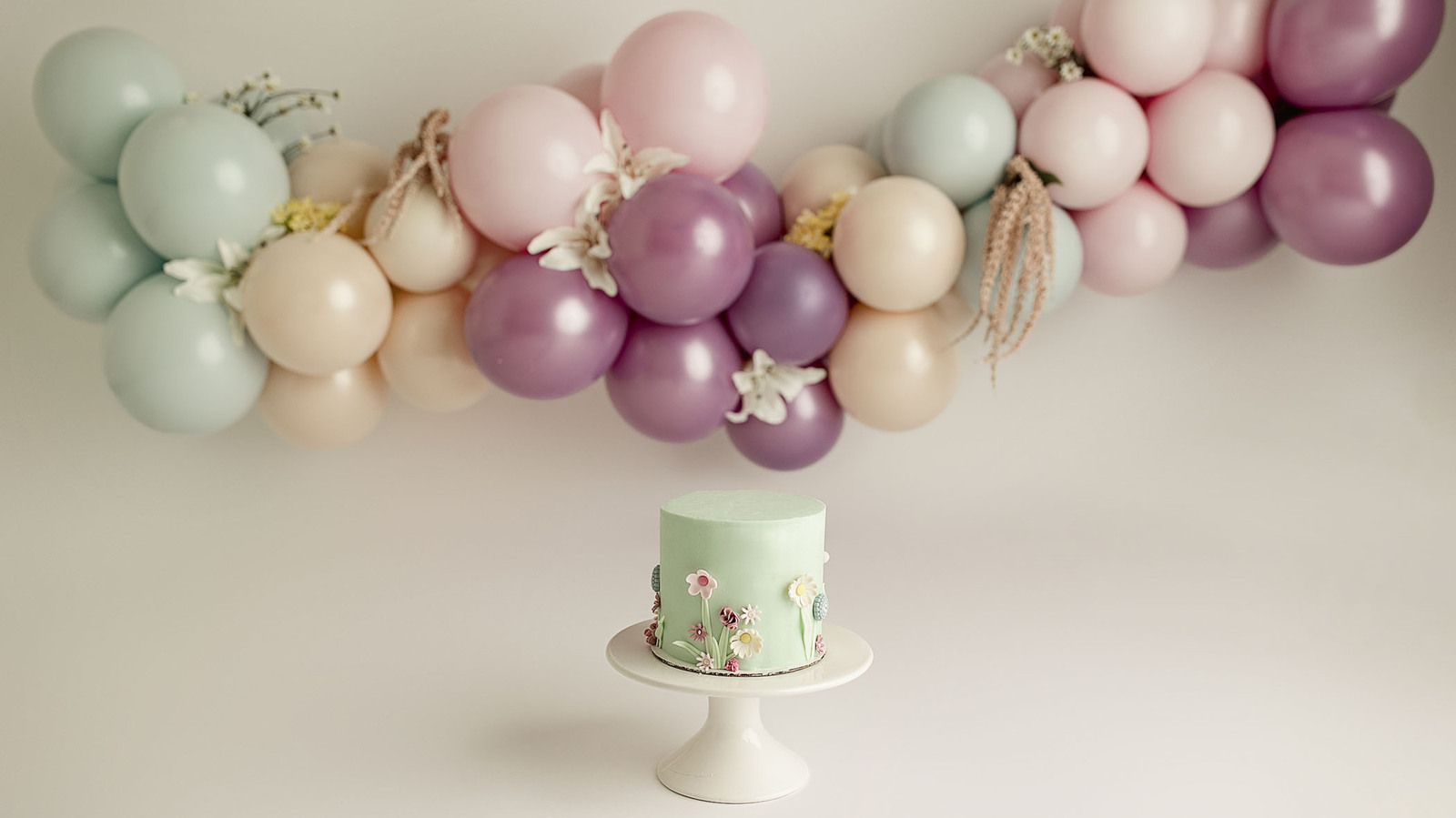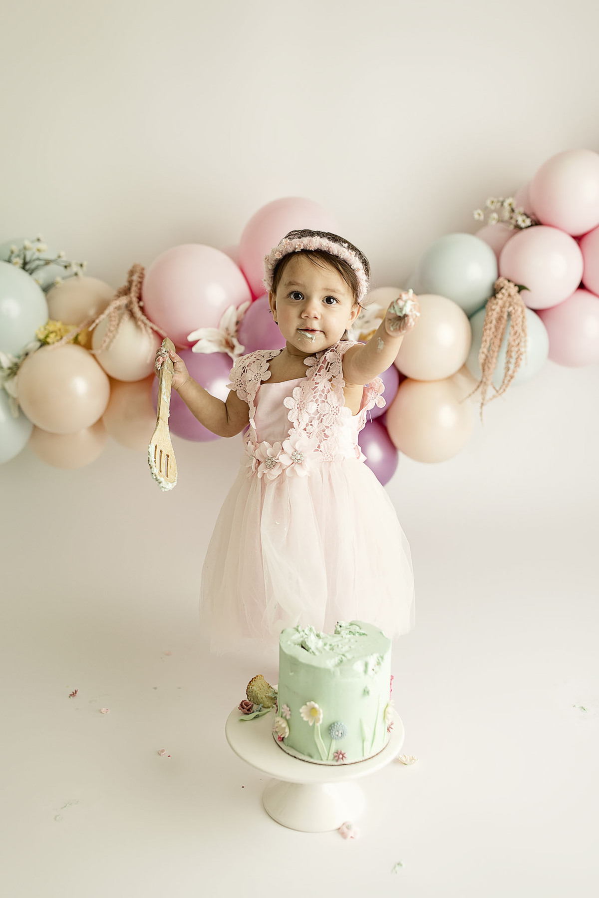 Each cake smash is thoughtfully designed with a custom balloon installation and coordinated color palette to reflect your baby's personality and your vision for their first birthday.